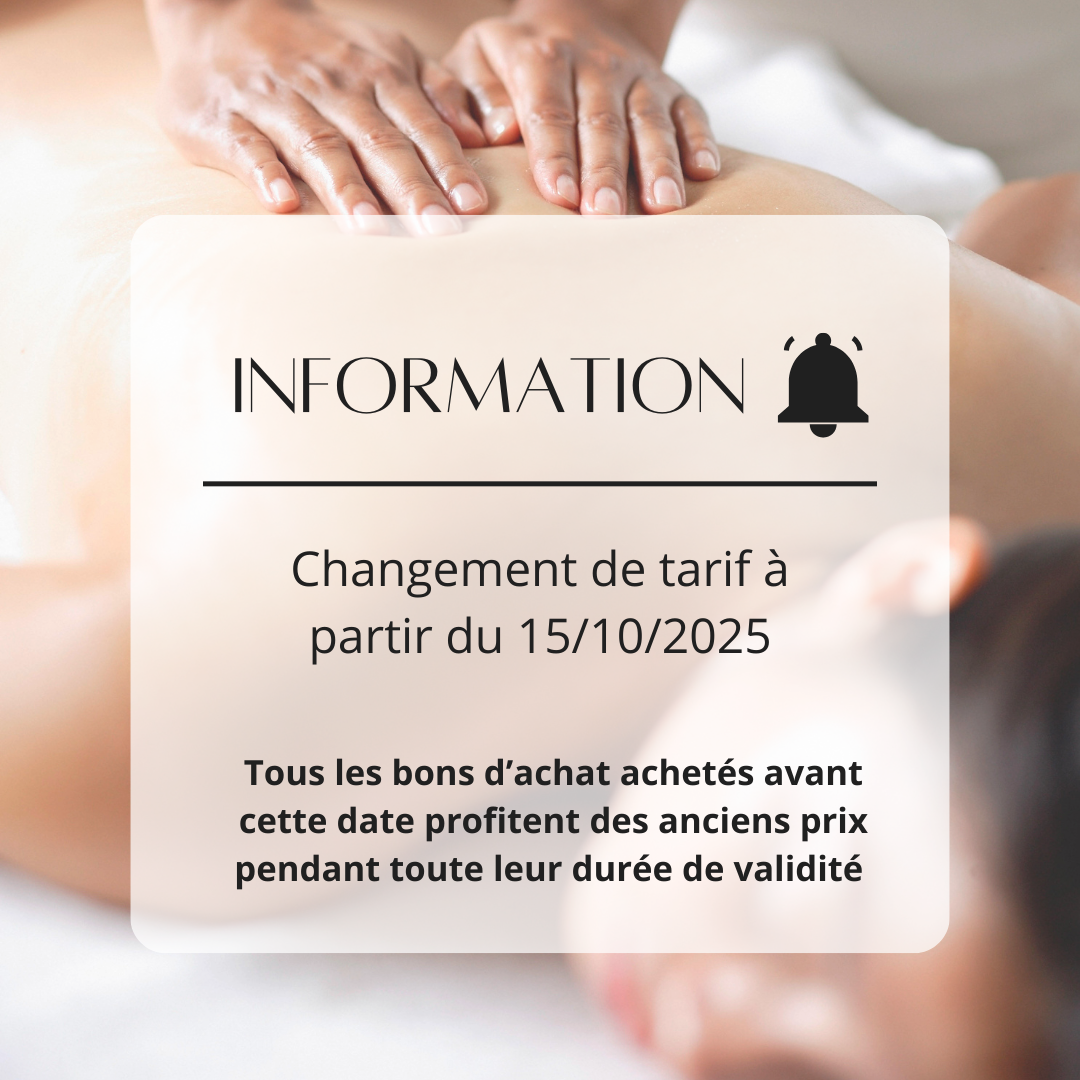Valable sur tous les massages visage ou corps de 30 à 90 min